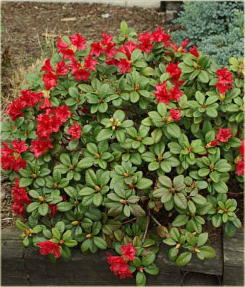 Rododendron Scarlet Wonder jest rośliną o niezwykle uderzającej barwie kwiatów.