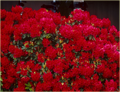 Różanecznik rododendron Vulcan to niezwykle dekoracyjny, zimozielony, dość zwarty krzew o pokroju kulistym i średniej sile wzrostu. Po 10 latach dorasta do około 1,5m wysokości i tyle samo szerokości.