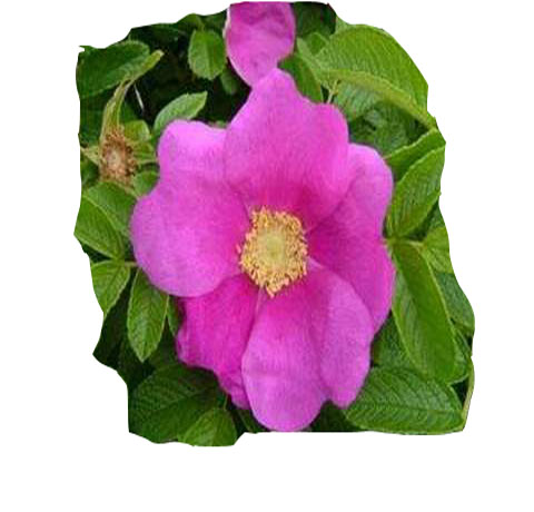 Róża jadalna pomarszczona jest dość typową różą parkową krzaczastą odmiany Rosa rugosa. Posiada duże średnicy 5-6 cm. niepełne kwiaty o różowych płatkach z żółtym oczkiem środkowym.
