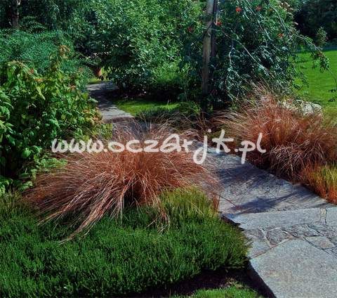 Bardzo atrakcyjny wygląd nadaje roślinom czerwonobrunatne zabarwienie liści, które to zabarwienie zachowuje się również zimą. Na końcach liście finezyjnie się zakręcają jak loczki i lekko falują na wietrze.